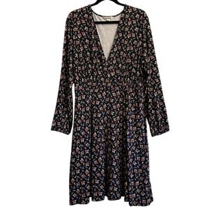 This Boden dress is a classic and preppy addition to your wardrobe. The black willow jersey fabric is lightweight and stretchy, making it perfect for any season. The dress features a V-neckline, long sleeves with casual elastic cuffs, and a knee-length hem. It also has pockets for added convenience. The dress is suitable for various occasions such as travel, party, cocktail, casual, and business. The floral pattern adds a touch of elegance to the dress, making it perfect for formal events. It is machine washable and easy to maintain. The dress is available in size 16-18R and is a fit and flare style.