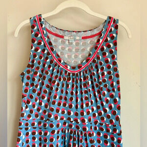 This Boden Driftwood Sienna Dress is in overall good condition. It features a fun and colorful circle pattern with bright details at the neckline, perfect for casual outings. There is one flaw, a small hole on the front right panel (shown in photos)—it’s hardly noticeable but something I felt should be mentioned and I’ve priced accordingly.