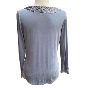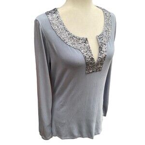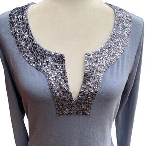 New with tags Boden sequined v-neck top in a dusty blue-gray shade. Features a flattering split neckline, shimmering sequins, and a soft, comfortable feel, perfect for festive occasions, nights out, or special events.