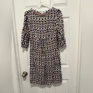 Boden Easy Scoop Neck Geometric Print Dress Size 4L. Length 34in, p2p 15.5in, sleeve 15.5in