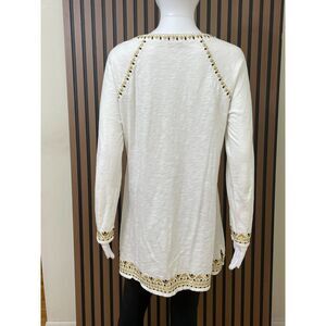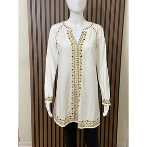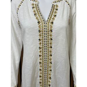 Boden Edie Women's M White Dress 100% Cotton Kaftan Mini Tunic Embroidered Boho