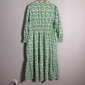 Boden Elena Cotton Tiered Midi Dress Womens 16-18 Paradise Green Ivy Trellis NWT