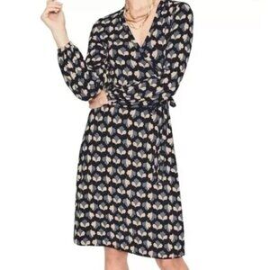 Boden Elodie Leaf Pattern Long Sleeve Wrap Dress Size US 6 Regular