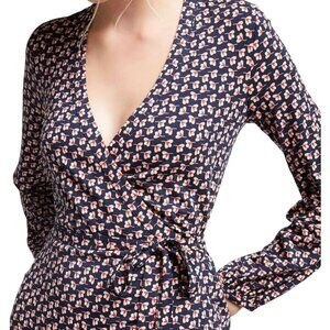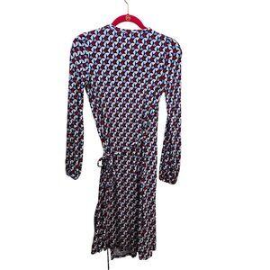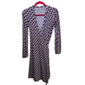Boden Elodie Long Sleeve Midi Wrap Dress Red White Blue Geometric Pattern Size 6