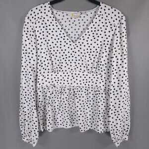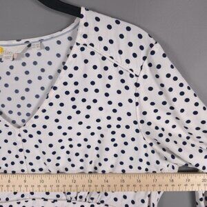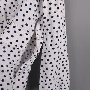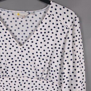 Boden Elsie Polka Dot Peplum Blouse Top White Navy V-Neck Long Sleeve Size 8P