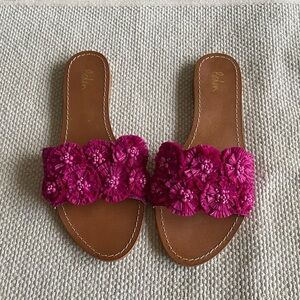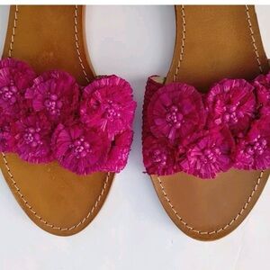 Boden Elspeth Hot Pink Fuchsia Raffia Flowers with Beads In Center of Each Flower Flat Slide