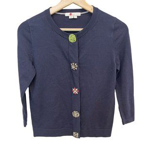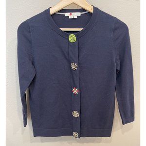 Boden Embellished Jewel Button Up Cardigan Size 2 Navy Blue Sweater