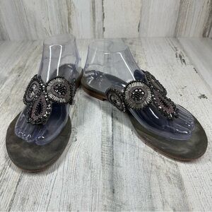 Boden Embellished Jewel Crusted Flip Flop Leather Slip On Thong Sandals #262