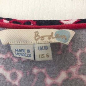 Gently used Boden tunic top in deep red and black print. Fabric is flowy and gorgeous. Measures 16.5 inches pit to pit, 30 inches from back collar to hem. Sleeves are 18.5 inches.