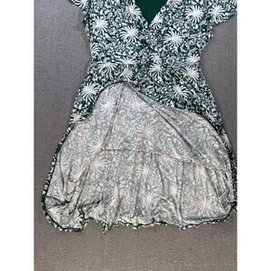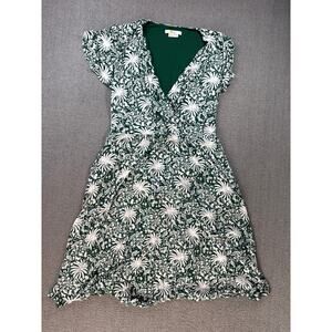Boden Evangeline Jersey Dress Faux Wrap Tropical Charm Green White Size 16 / 18R