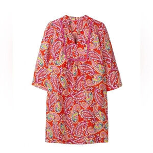 Boden Evangeline Linen Tunic Dress in Red Pop Mexican Paisley Size 4 petite