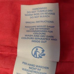 Scalloped trim on edges of sleeves and bottom of dress. Also across the bodice