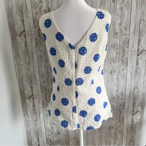 Excellent condition, size 6. I love how the eyelet pattern makes the dots look like sand dollars. This top is so pretty.