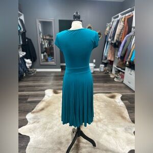 Boden Faux Wrap Midi Dress Jersey Blue Front Twist Size 8R Flowy