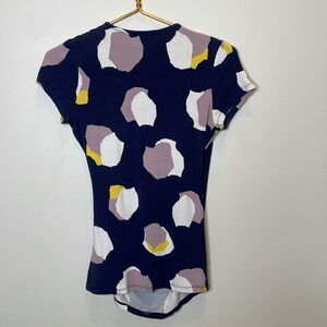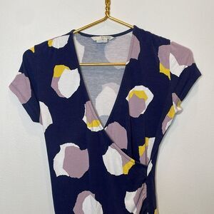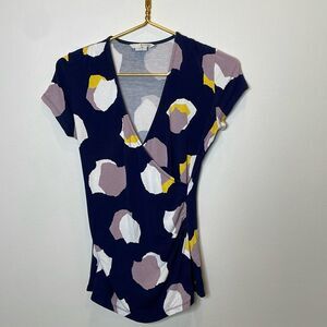 BODEN Blue Purple White Faux Wrap V-Neck Stretch Short Sleeve Top