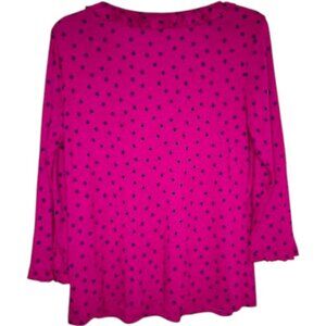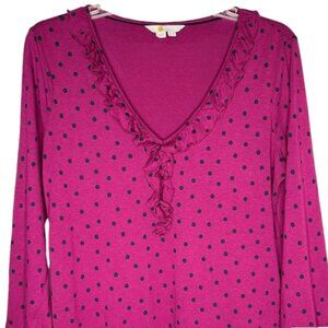 Boden Federica Polka Dot Jersey Ruffle-Neck Top 3/4 Sleeves - Fuchsia/Navy - 10