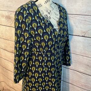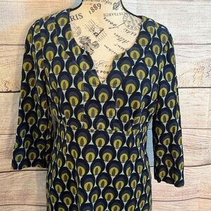 Boden Fine Corduroy Dress Peacock Print 3/4 Sleeves V-neck Size 6