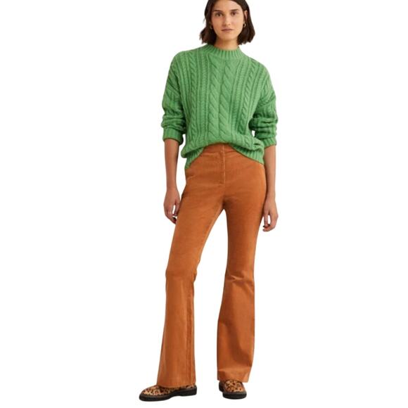 Boden Flare High Rise Corduroy Pants Dark Tan UK 14R US 10R R0180 NWT