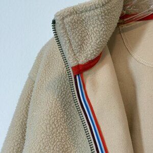 Boden Jacket Full Zip Fleece Pockets Cream Red Medium