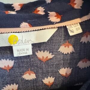 Boden Floral Mini Shirt Dress Navy Blue Collared Button Front Long Sleeve Sz 8