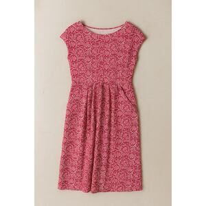 Boden Floral Print Fit & Flare Dress Pink Paisley Cap Sleeve Cotton Blend sz 10L