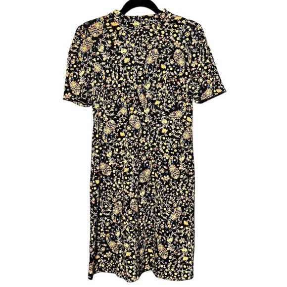 Boden Floral Print High Neck Short Sleeve Knee Length Cotton Dress Size 6L