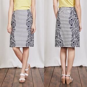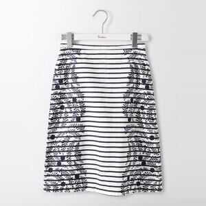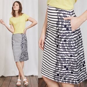 Boden Floral + Stripe Cotton A-Line Skirt Blue/White size US 12 Long UK 16L