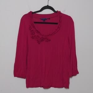 Boden Floret Ruffle Trim Tee Shirt in Fuchsia - Size M (UK 16) - Excellent Used Condition (EUC)