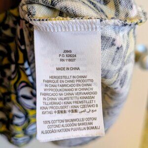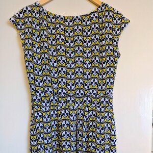 Terrific 100% cotton Boden dress with a bright yellow, pink, navy, and white pattern. In great shape.