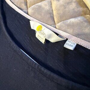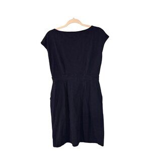 Dress is made from slubbed-cotton jersey, giving the fabric a subtle texture. Tailored shape with a waistband that’s accentuated by a front box pleat and side pockets. Lightly worn with no flaws.