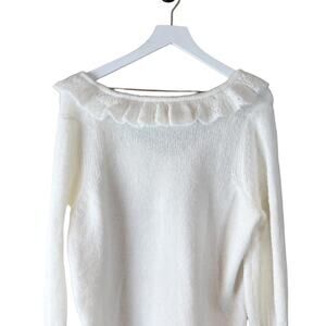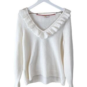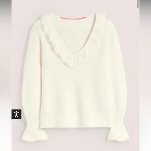 Boden Fluffy Frill V-neck Sweater Ivory Alpaca Size 12