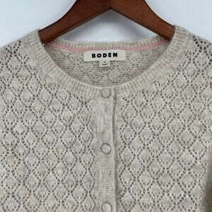 Boden Fluffy Pointelle Cardigan Womens Size XS Oatmeal Melange Mohair Wool Blend