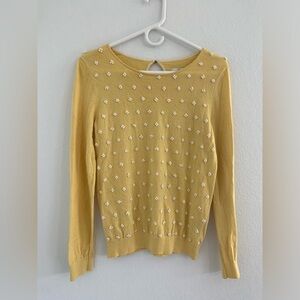 Boden French Knots Embroidered Wool Blend Lightweight Pullover Sweater Yellow