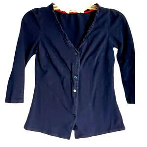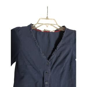 Boden Freya Navy Blue Ruffle trim jersey knit blouse top size US 2R-Ruffle Trim V Neck