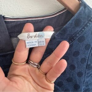 Boden Freya Polka Dot Denim Dress Womens Size 4 L long Blue Cotton Sheath