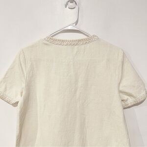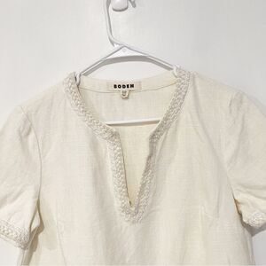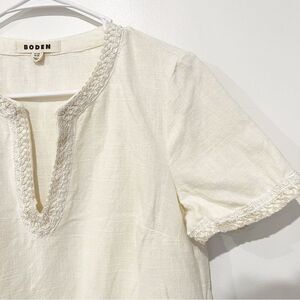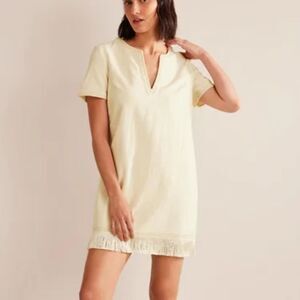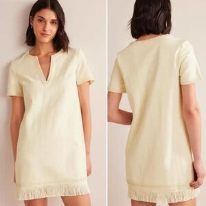 Boden Fringe Trim Hem Mini Shift Dress in Ivory 100% Cotton Pullover size 6 Regular