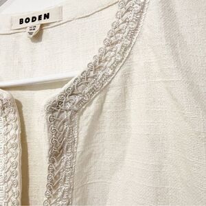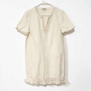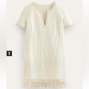 Boden Fringe Trim Hem Mini Shift Dress in Ivory 100% Cotton Pullover size 6R