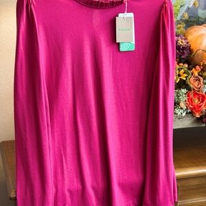 Chic fuchsia colored top with ruffled neckline. Long sleeves for a classic look. Ideal for versatile styling. The fabric is extremely soft 🩷 and great for the cooler fall days. Paired with jeans makes a comfy and chic Saturday outfit🩷 Beautiful fushia color.