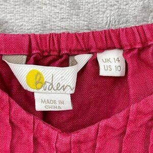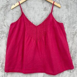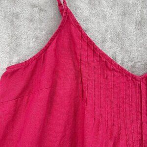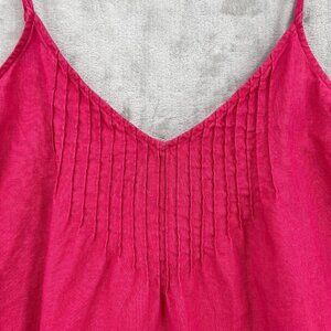 Boden Fuchsia Pink 100% Linen Pleat Front Camisole Tank Top V Neck