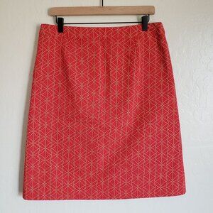Boden Geo Floral Print A-Line Knee Length Skirt Red Sz Women's 14L Lined Modest