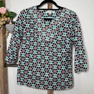 Boden Geometric Medallion Print Cotton 3/4 Sleeve Blouse Size 4