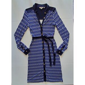 Boden Geometric Print Soft Jersey Cinch-Tie-Waist Button-Down Shirtdress Long Sleeve - Size 4