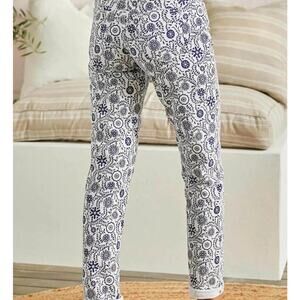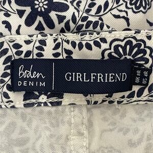 Boden Girlfriend Pants Ivory Opulent Floral Garden Navy Size 4 Regular Classic