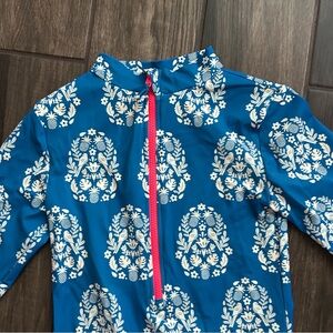 Boden Girls Sun Safe Raglan Sleeve Swimsuit Floral Birds Sz 13-14 Yrs