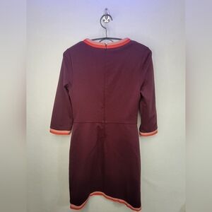 Boden Gloria Ponte Shift Dress in Merlot Size 6. 3/4 sleeves, 2 front pockets, back zipper, vintage inspired, colorblock trim, lined, 39% cotton 29%polyamide 27% model 5% elastane, machine washable.