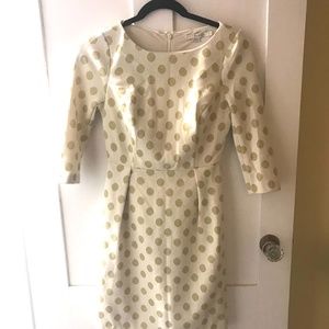 Petite size 2. Only worn a few times. Nice thick material (polyester/cotton) and the inside is lined. 3/4 sleeve.