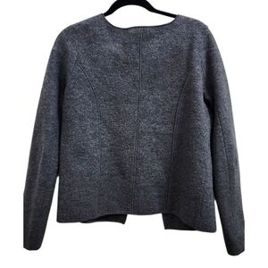 Boden Gray Seamed Boiled Wool Open Cardigan Sweater Blazer Jacket US 8 UK 12