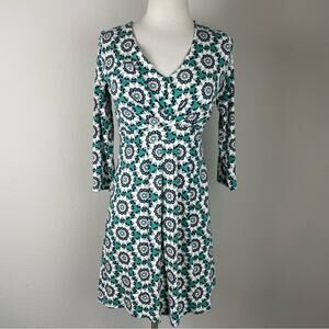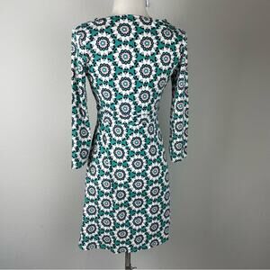Boden Green White Pink Geometric Floral Knit Fit & Flare Dress 6
