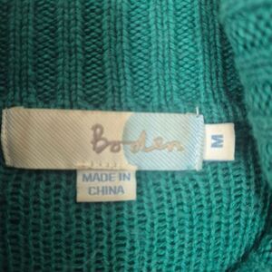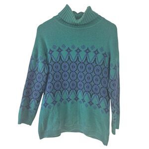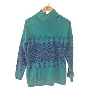 Boden Green and Blue Cowl Neck Sweater with Geometric Pattern Wool Size Medium