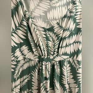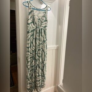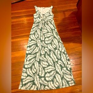 Elegant maxi dress with a leaf pattern. Sleeveless design. Perfect for casual outings.